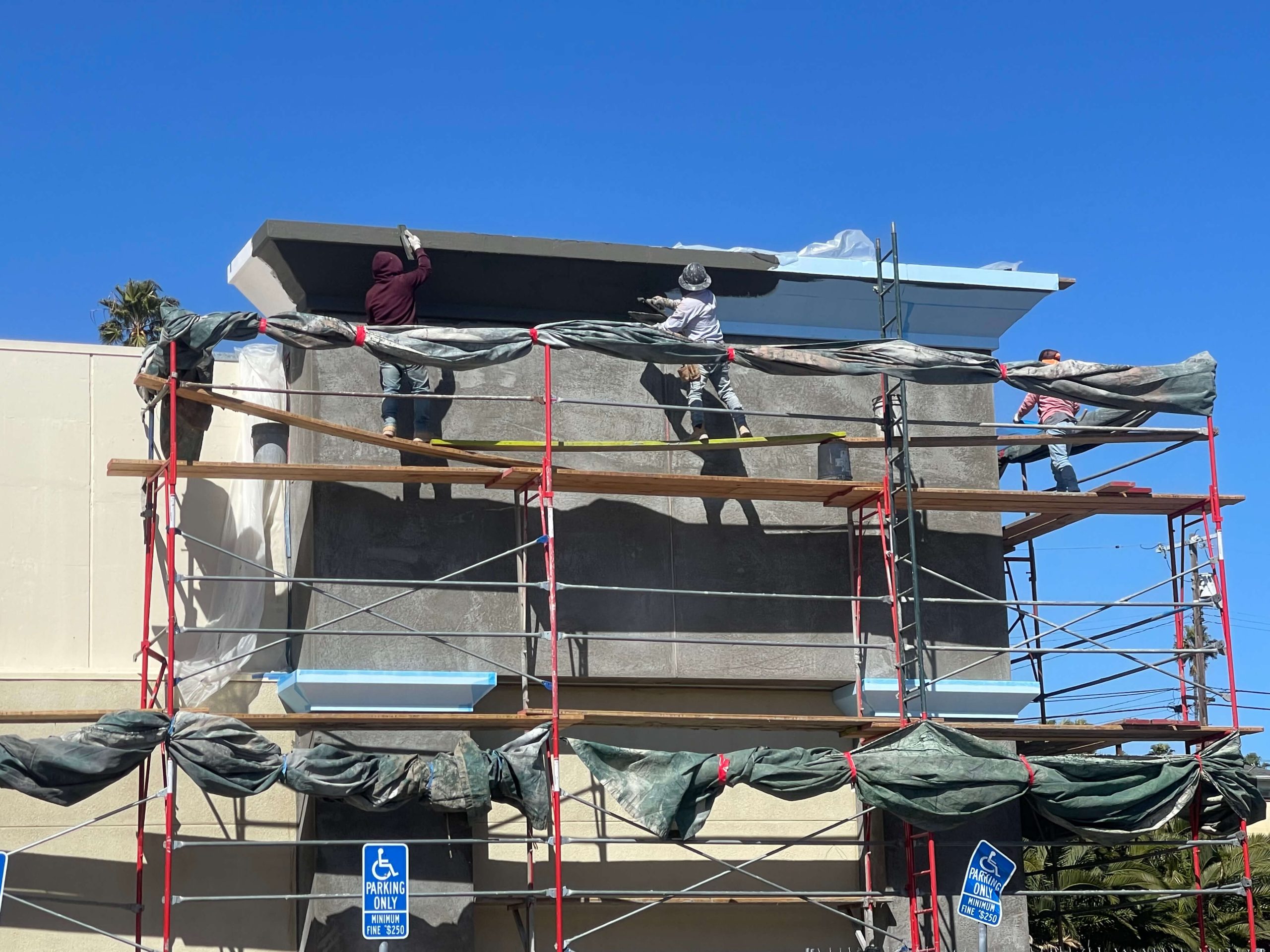 We only use top-tier cement and polymer-based products, ensuring your commercial facade stands up to the California sun without fading or chalking.